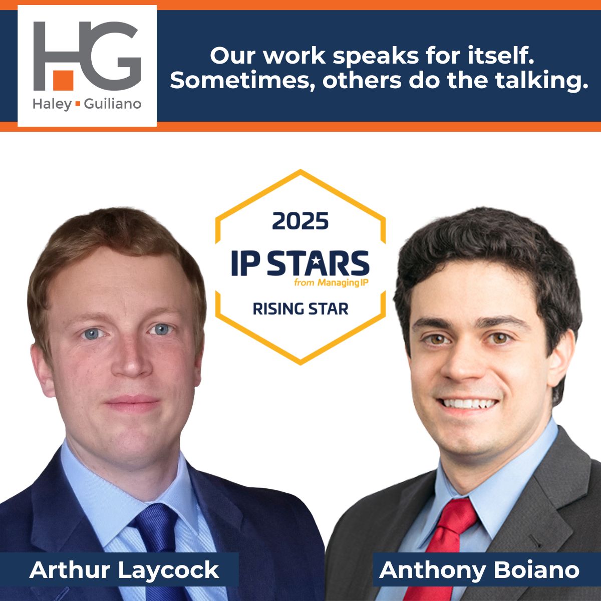 Arthur Laycock and Anthony Boiano Honored as Rising Stars by IP Stars
